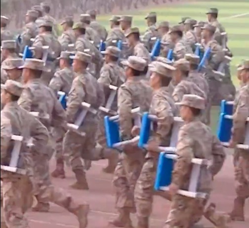 近日,新疆军区某综合训练基地内,入伍新兵整齐列阵,开启春季新训。