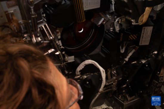 4月6日,美国航空航天局宇航员克里斯蒂娜·科克从执行“阿耳忒弥斯2号”载人绕月飞行任务的“猎户座”飞船上观看地球。新华社发(美国国家航空航天局供图)