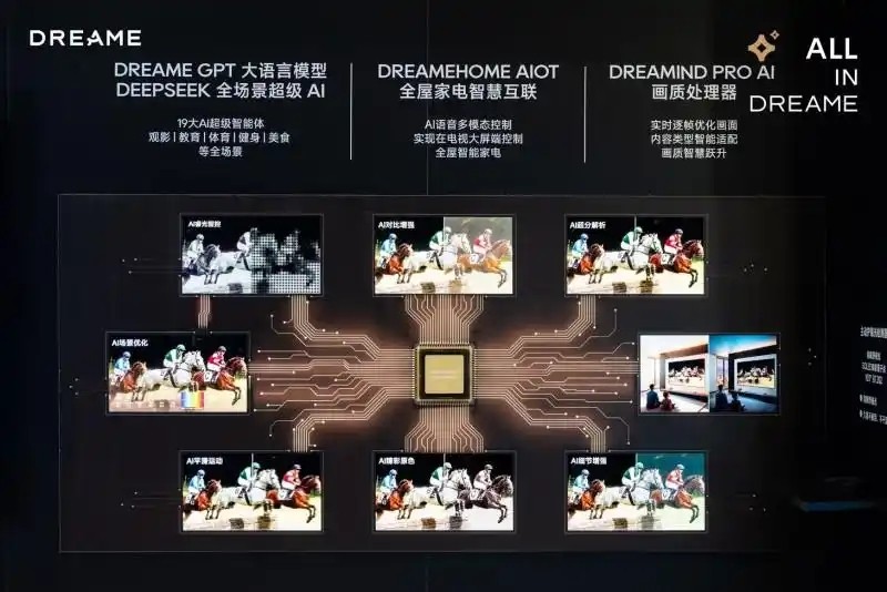 同时,追觅电视将三重AI能力深度融入全系列产品,Dreamind系列AI画质处理器实时优化音画,19大智能体覆盖全场景交互,DreameHome AIoT应用打通智能家居生态,让电视成为家庭智能核心终端。